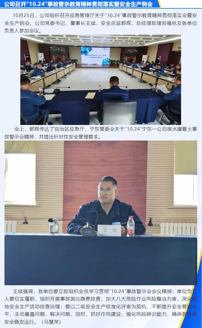 公司召開“10.24”事故警示教育精神貫徹落實暨安全生產(chǎn)例會