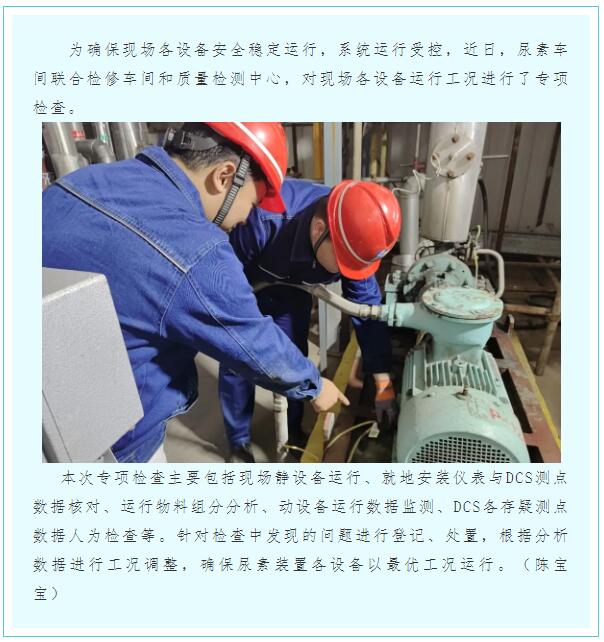尿素車間開展現(xiàn)場設(shè)備運行工況專項檢查