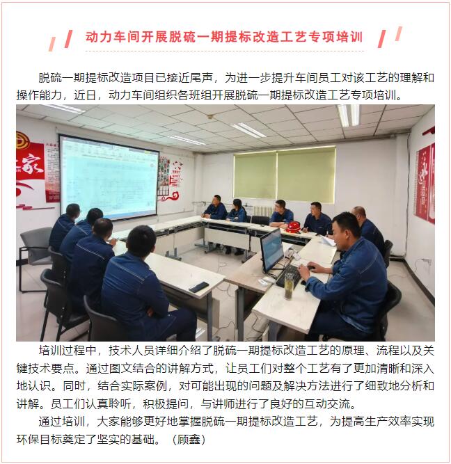動(dòng)力車間開(kāi)展脫硫一期提標(biāo)改造工藝專項(xiàng)培訓(xùn)