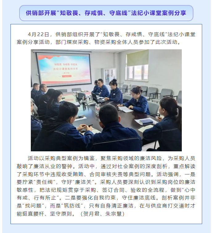供銷部開展“知敬畏、存戒懼、守底線”法紀小課堂案例分享