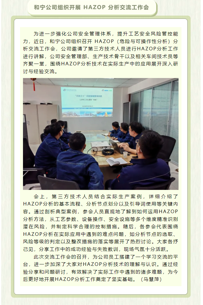 和寧公司組織開展 HAZOP 分析交流工作會