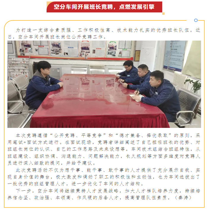 空分車(chē)間開(kāi)展班長(zhǎng)競(jìng)聘,點(diǎn)燃發(fā)展引擎