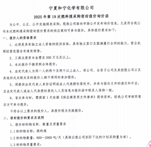 寧夏和寧化學(xué)有限公司2025年第19次燃料煤采購(gòu)密封報(bào)價(jià)詢價(jià)函.pdf