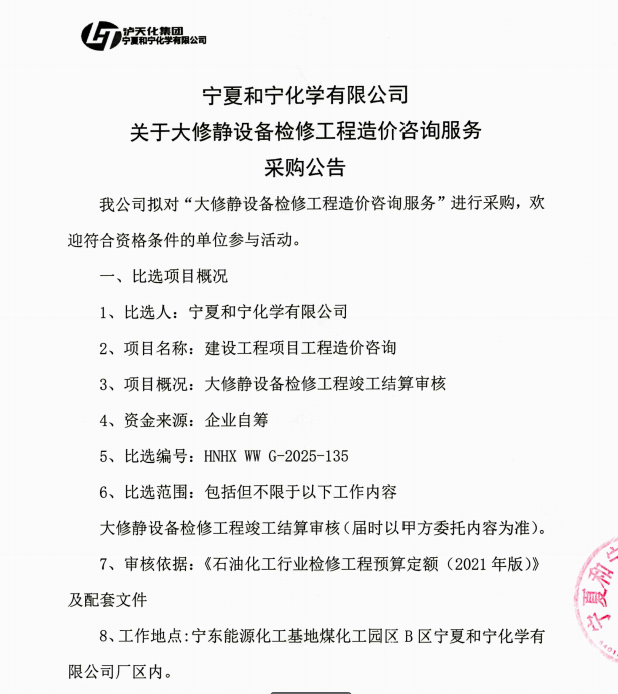 寧夏和寧化學(xué)有限公司關(guān)于大修靜設(shè)備檢修工程造價(jià)咨詢服務(wù)采購(gòu)公告.pdf
