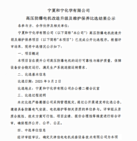 寧夏和寧化學(xué)有限公司高壓防爆電機(jī)改造升級(jí)及維護(hù)保養(yǎng)比選結(jié)果公示.pdf