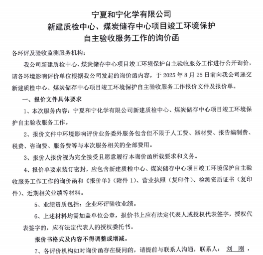 寧夏和寧化學(xué)有限公司新建質(zhì)檢中心、煤炭?jī)?chǔ)存中心項(xiàng)目竣工環(huán)境保護(hù)自主驗(yàn)收服務(wù)工作的詢價(jià)函.pdf [全文]