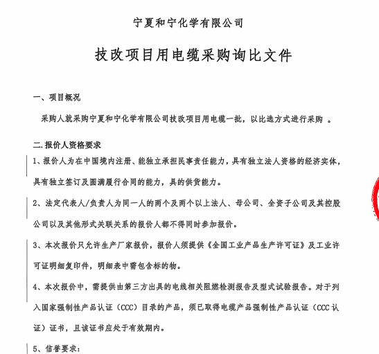 寧夏和寧化學(xué)有限公司技改項(xiàng)目用電纜采購(gòu)詢比價(jià)文件.pdf [全文]