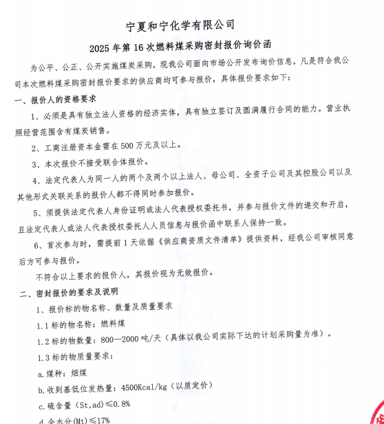 寧夏和寧化學(xué)有限公司2025年第16次燃料煤采購(gòu)密封報(bào)價(jià)詢價(jià)函.pdf [全文]