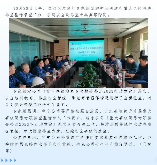自治區(qū)應(yīng)急廳專家組到和寧公司開展重大風(fēng)險(xiǎn)隱患排查整治督查工作