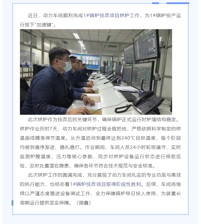 動(dòng)力車間完成1#鍋爐技改項(xiàng)目烘爐工作