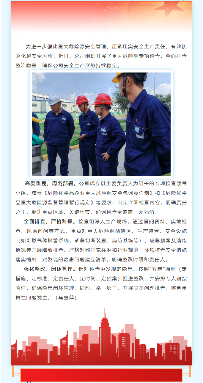 公司扎實(shí)開展重大危險(xiǎn)源專項(xiàng)檢查