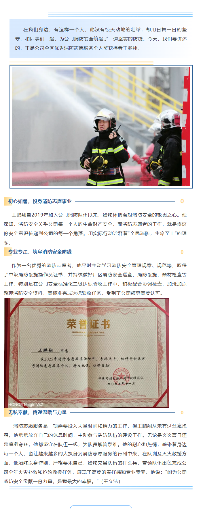 平凡堅守 守護平安丨王鵬翔的消防志愿之路