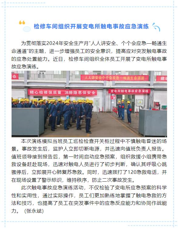 檢修車間組織開展變電所觸電事故應急演練