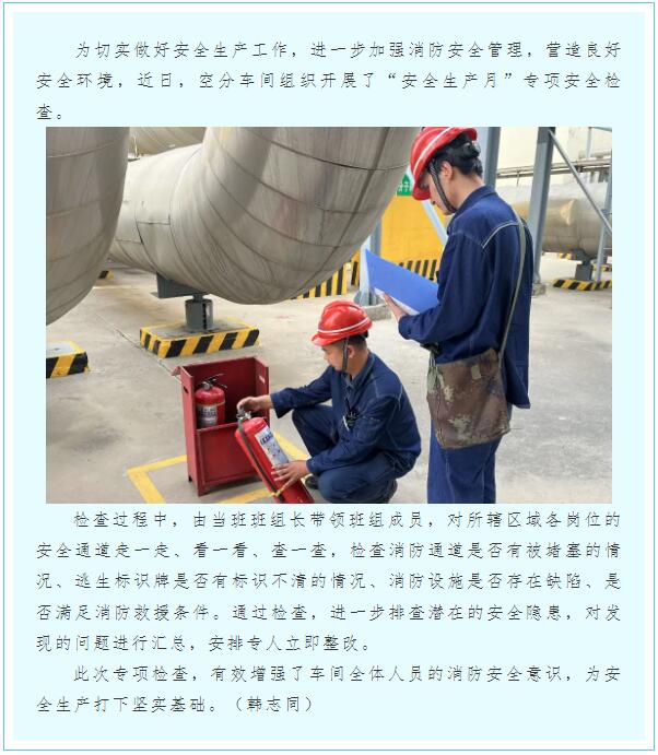 空分車間組織開展“安全生產(chǎn)月”專項安全檢查
