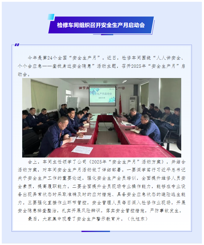 檢修車間組織召開安全生產(chǎn)月啟動(dòng)會(huì)