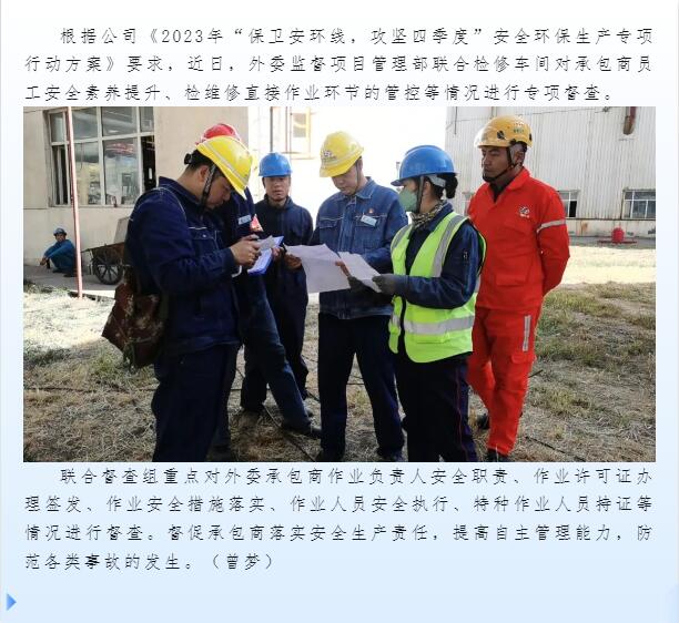 “保衛(wèi)安環(huán)線,攻堅四季度”外委監(jiān)督項目管理部在行動