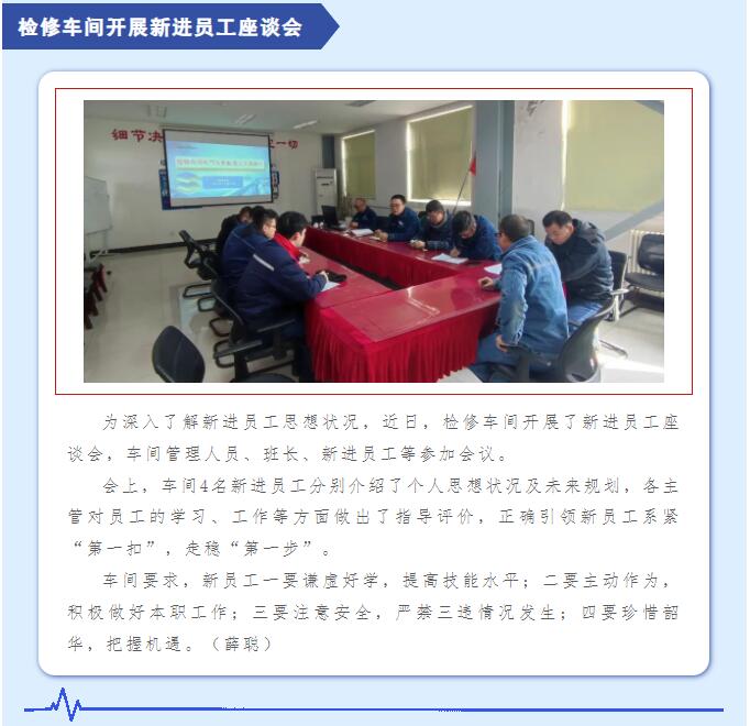 檢修車間開展新進員工座談會