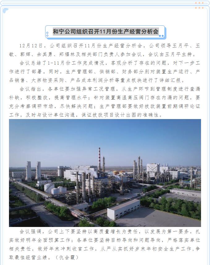 和寧公司組織召開11月份生產(chǎn)經(jīng)營分析會