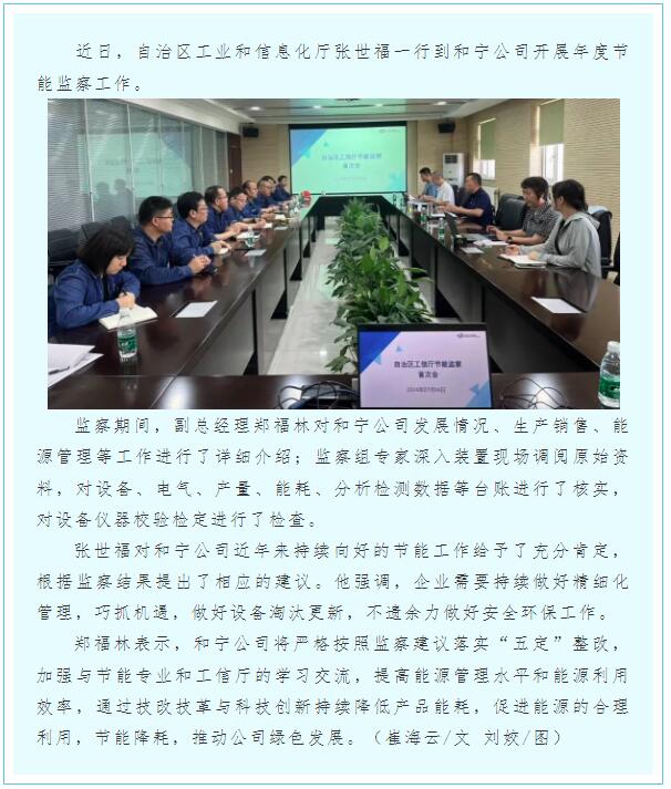 自治區(qū)工信廳到和寧公司開展節(jié)能監(jiān)察工作