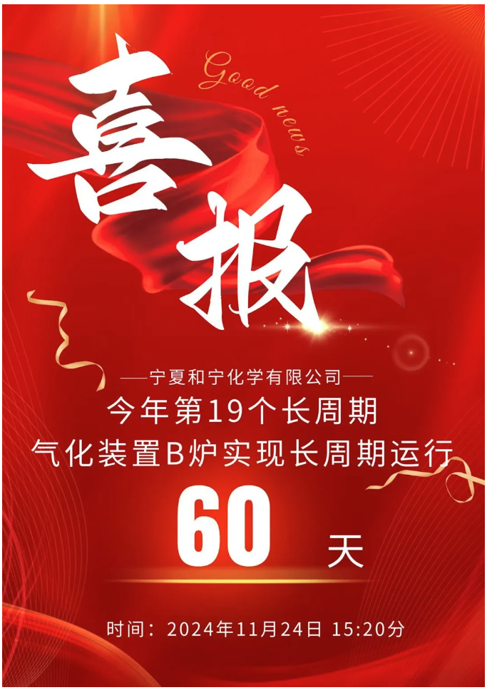 喜報!氣化裝置B爐實現(xiàn)長周期運行60天