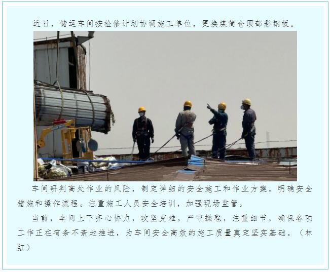 儲(chǔ)運(yùn)車(chē)間煤筒倉(cāng)頂部彩鋼板更新作業(yè)全面推進(jìn)