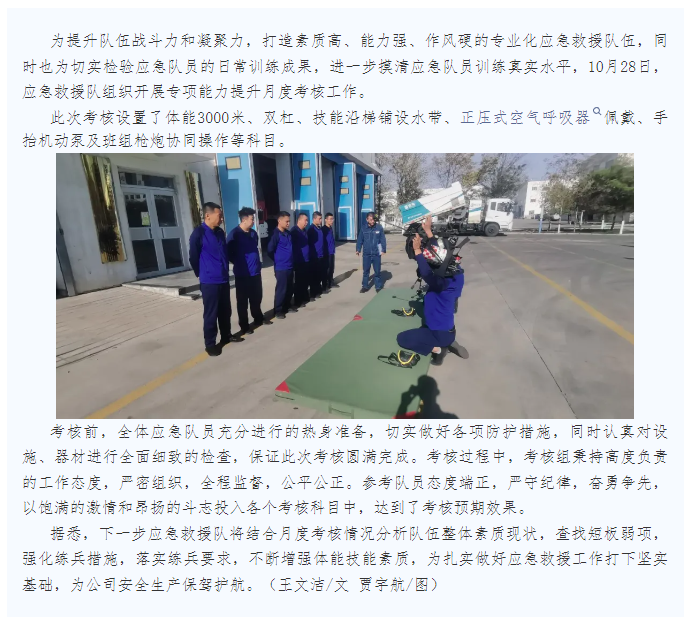應(yīng)急救援隊組織開展月度考核