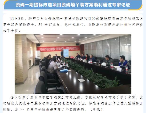 脫硫一期提標(biāo)改造項(xiàng)目脫硫塔吊裝方案順利通過專家論證