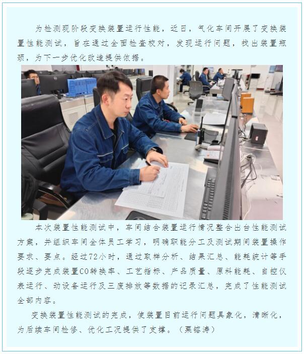 氣化車間完成變換裝置性能測(cè)試