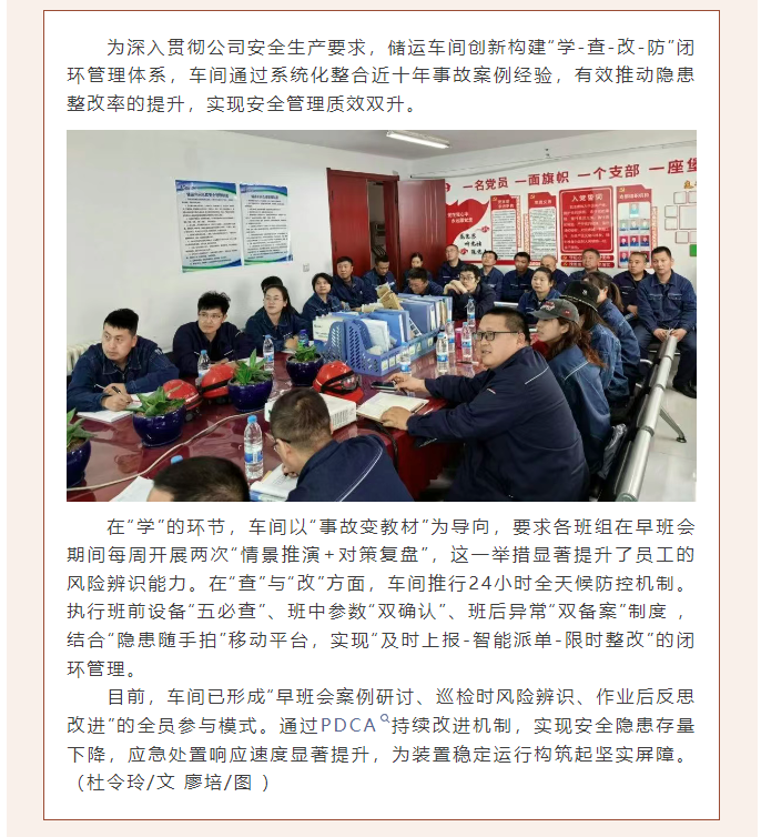 儲(chǔ)運(yùn)車間構(gòu)建“學(xué)查改防”閉環(huán)體系 筑牢安全生產(chǎn)防線