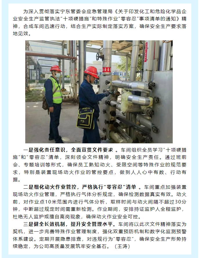 合成車(chē)間多措并舉全面落實(shí)安全生產(chǎn)監(jiān)管執(zhí)法要求