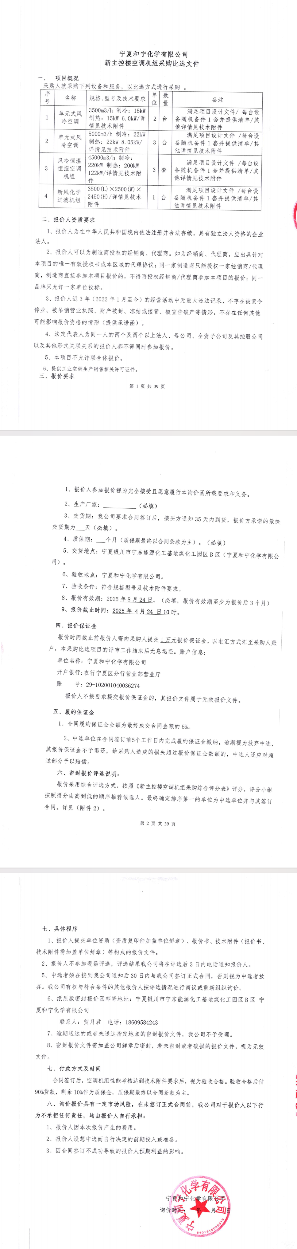 寧夏和寧化學(xué)有限公司新主控樓空調(diào)機(jī)組采購比選文件.pdf [全文]