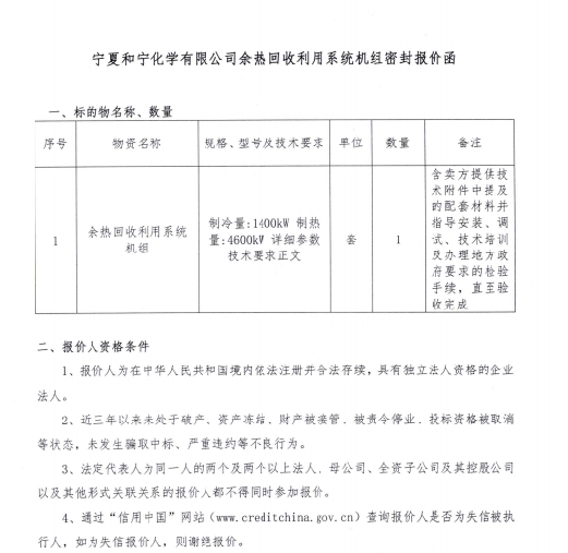 寧夏和寧化學(xué)有限公司余熱回收利用系統(tǒng)機(jī)紐密封報(bào)價(jià)函.pdf余熱回收利用系統(tǒng)機(jī)組密封報(bào)價(jià)函.docx智能一體化中溫余熱高效回收利用技術(shù)研究與開發(fā)項(xiàng)目設(shè)備采購技術(shù)規(guī)格書.pdf [全文]