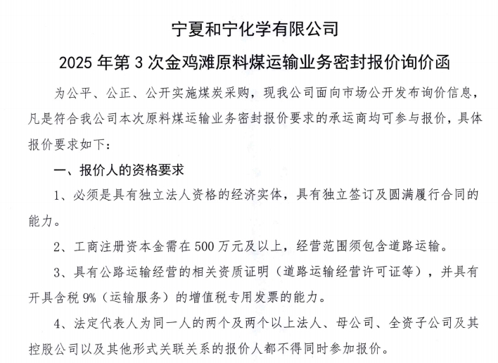 寧夏和寧化學(xué)有限公司2025年第3次金雞灘原料煤運(yùn)輸業(yè)務(wù)密封報(bào)價(jià)詢價(jià)函.pdf [全文]
