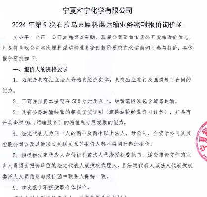 寧夏和寧化學(xué)有限公司2024年第2次原料煤采購供應(yīng)商入圍項(xiàng)目公開競選公告(附件) [全文]
