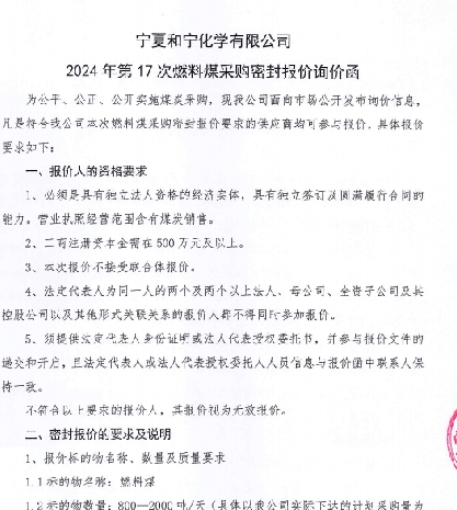 寧夏和寧化學(xué)有限公司2024年第17次燃料煤采購密封報(bào)價(jià)詢價(jià)函.pdf [全文]