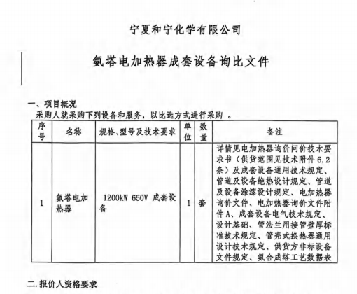 寧夏和寧化學(xué)有限公司氨塔電加熱器成套設(shè)備詢比文件.pdf寧夏和寧化學(xué)有限公司氨塔電加熱器成套設(shè)備詢比文件.docx [全文]