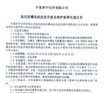 寧夏和寧化學(xué)有限公司高壓防爆電機(jī)改造升級(jí)及維護(hù)保養(yǎng)比選公告.pdf [全文]