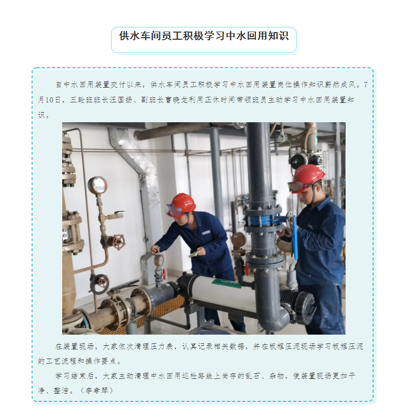 供水車間員工積極學(xué)習(xí)中水回用知識(shí)