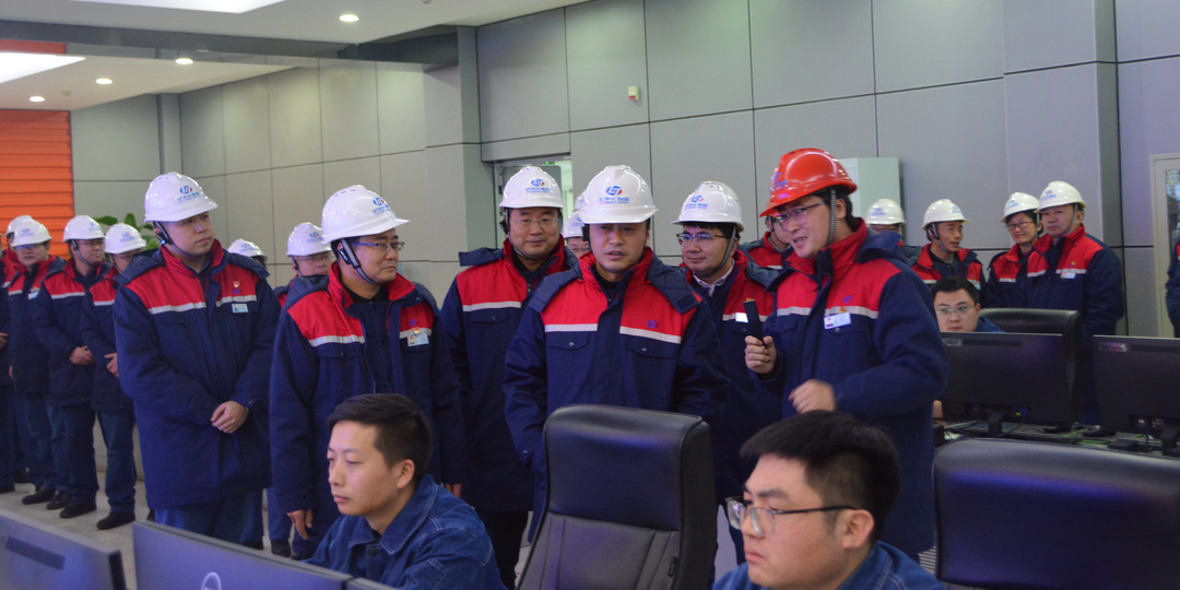 在中央控制室,潘建華詳細(xì)了解了裝置安全生產(chǎn)運(yùn)行情況,對氣化、合成、尿素等車間的裝置運(yùn)行管控提出了指導(dǎo)意見,并對調(diào)度室黨支部安全文化建設(shè)“一面墻”、黨建陣地化建設(shè)給予肯定。