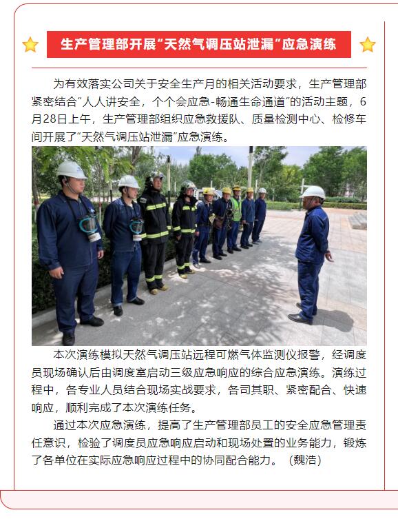 生產(chǎn)管理部開展“天然氣調(diào)壓站泄漏”應(yīng)急演練