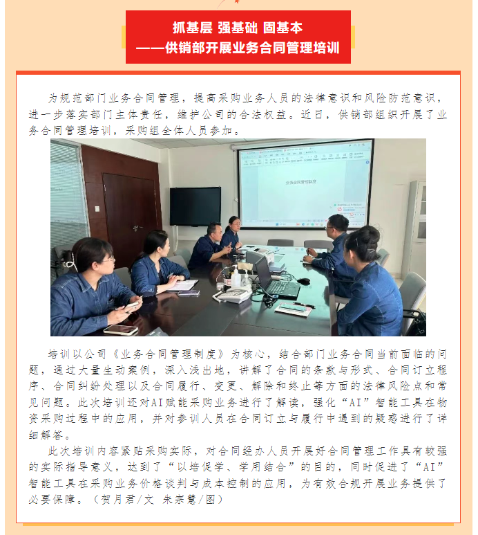 抓基層 強基礎 固基本 ——供銷部開展業(yè)務合同管理培訓