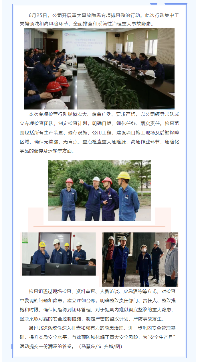 和寧公司開展六月重大事故隱患專項(xiàng)排查整治行動(dòng)