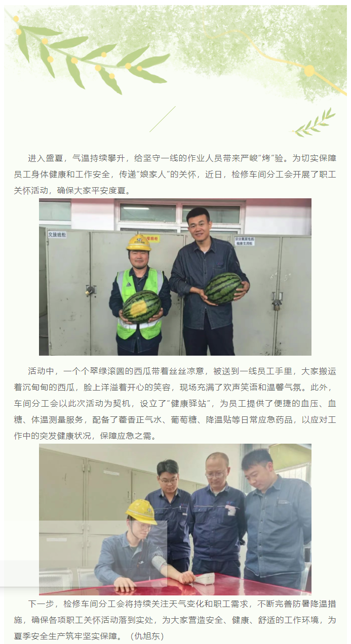 貼心關(guān)懷丨 檢修車間分工會(huì)守護(hù)職工平安度夏