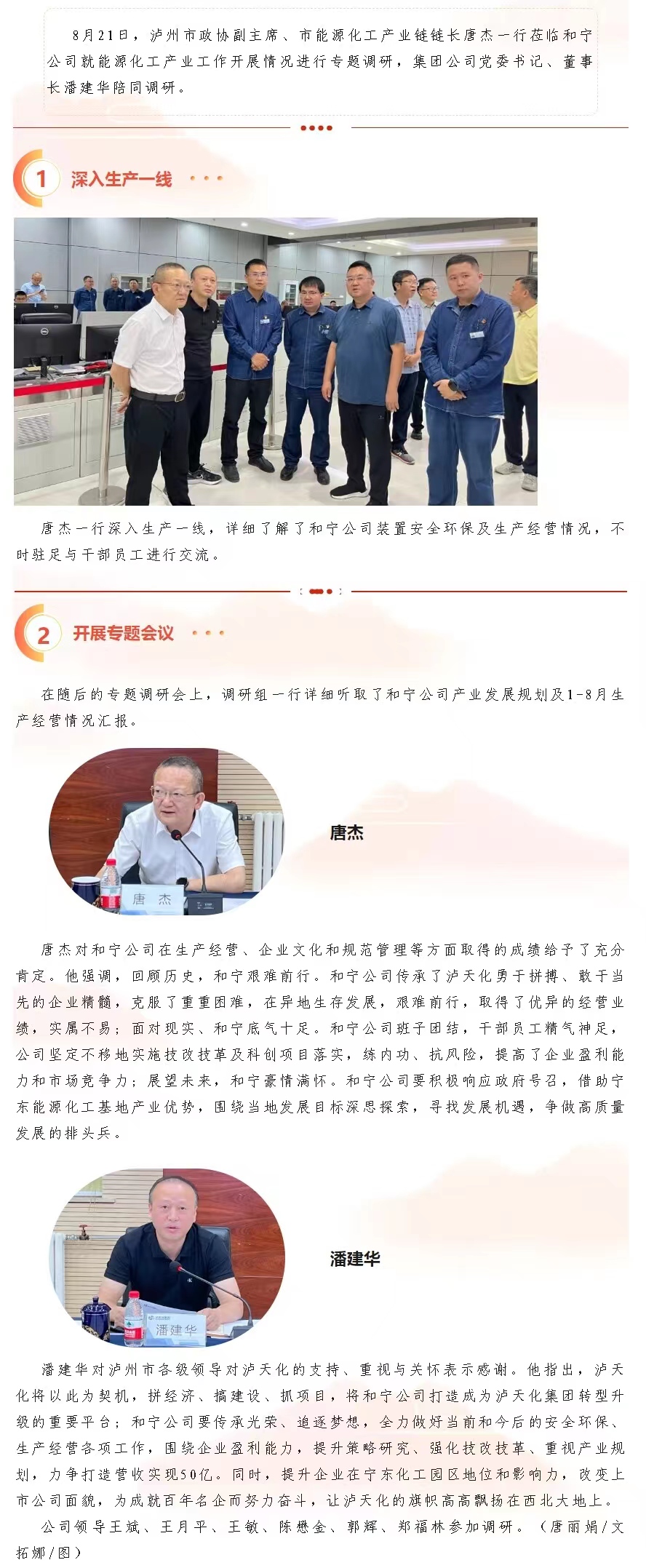瀘州市政協(xié)副主席唐杰一行蒞臨和寧公司調(diào)研指導(dǎo)