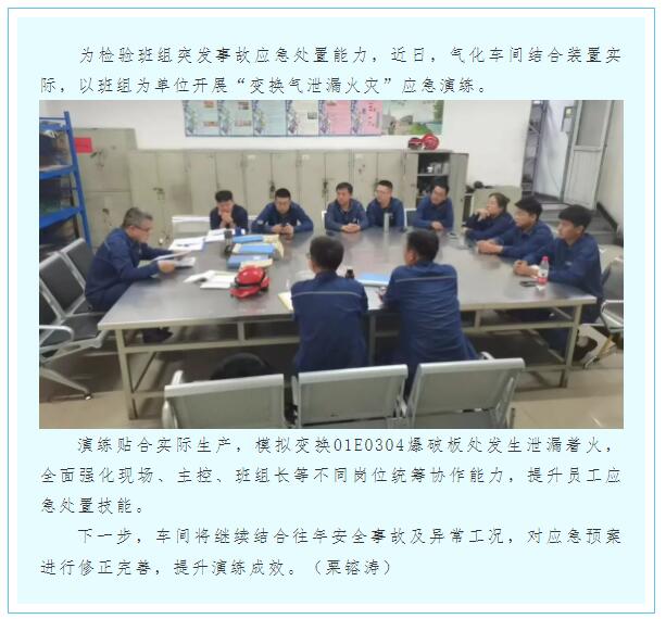 氣化車間開展“變換氣泄漏火災(zāi)”應(yīng)急演練