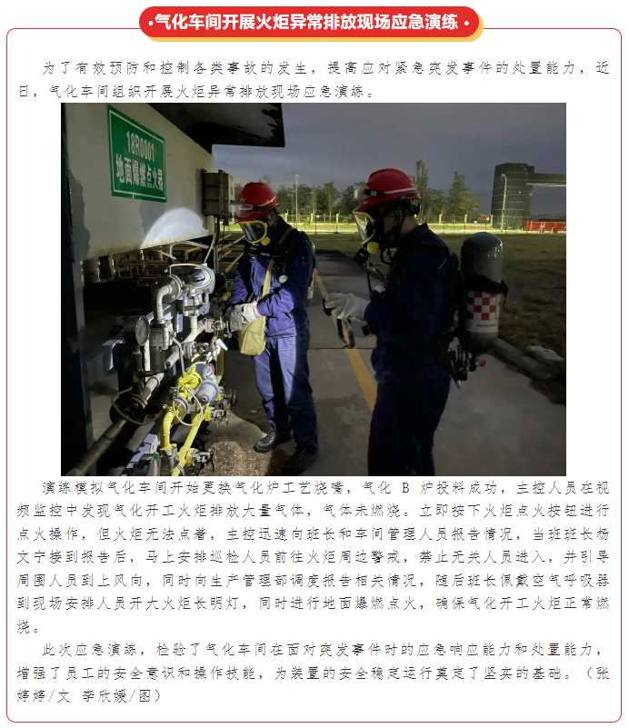 氣化車間開展火炬異常排放現(xiàn)場應(yīng)急演練