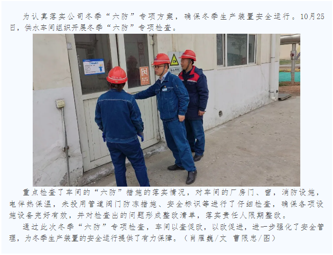 供水車間組織開展冬季“六防”專項檢查