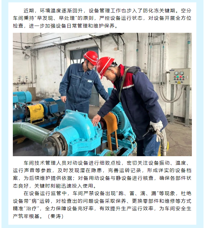 空分車間加強設(shè)備檢查,護航春季安全生產(chǎn)