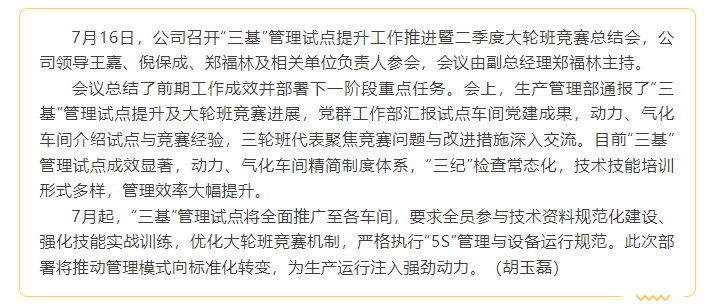 公司全面推進(jìn)“三基”管理提升 大輪班競(jìng)賽賦能生產(chǎn)提質(zhì)增效