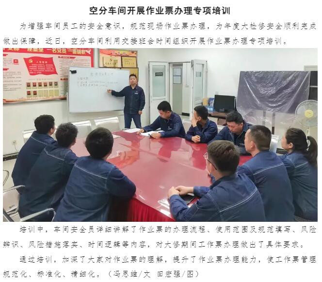 空分車間開展作業(yè)票辦理專項(xiàng)培訓(xùn)